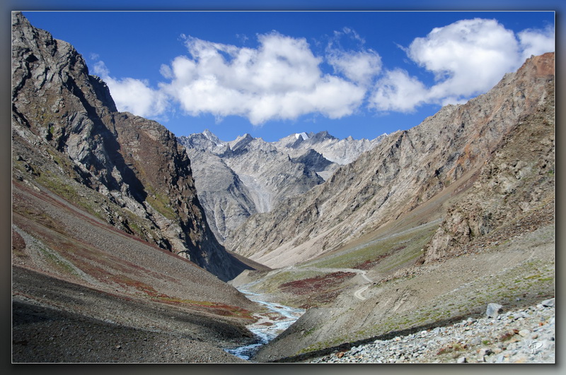 Le dernier jour de marche s’annonce facile. Une longue descente sur une route en construction. Le réseau routier rejoignant le Zanskar ne cesse de s’agrandir, désenclavant cette région jusqu’ici un peu préservée. La nuit a de nouveau été froide; on était encore à 4500m.