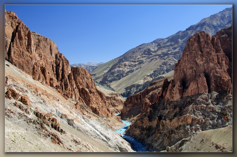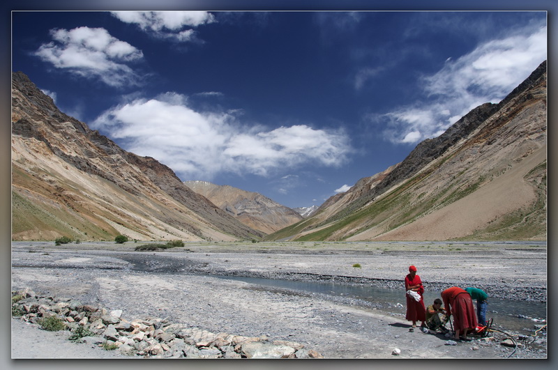 Nous quittons Sking en longeant la rivière avec en point de mire le Gonborangjon, la montagne sacrée des Zanskaris, imposant pic qui n’a jamais été gravi. Son accès est interdit.