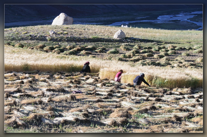 Le village de Sking est l'un des plus isolés du Zanskar (4200m). Il abrite une centaine d'habitants, dans une poignée de maisons entourées de champs d'orge. Tout le monde, ici, dépend entièrement du travail de la terre et des aléas du climat. Avant l'arrivée des grands froids, l'on récolte et l'on stocke ce qui va constituer la subsistance familiale pour toute une année. L'été est court, l'hiver interminable. Ce sont essentiellement les femmes qui prennent en charge les récoltes. Qu'elles soient jeunes ou vieilles, elles travaillent sans relâche, de l'aube au soir, dans l'urgence des jours qui raccourcissent.